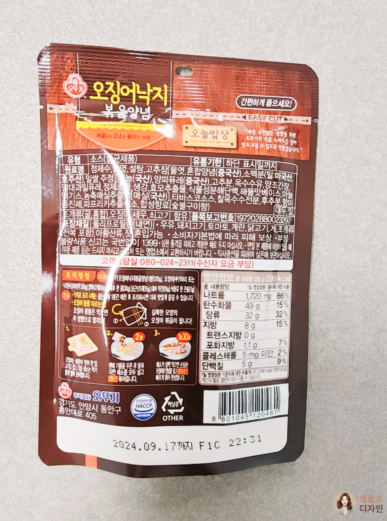 이런 양념장이 좋은게 뒤쪽에 요리방법이 있어서 그대로만 해도 맛있게 만들 수 있는 점 같아요.