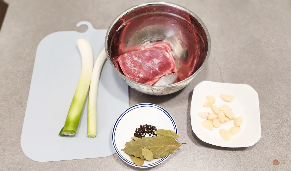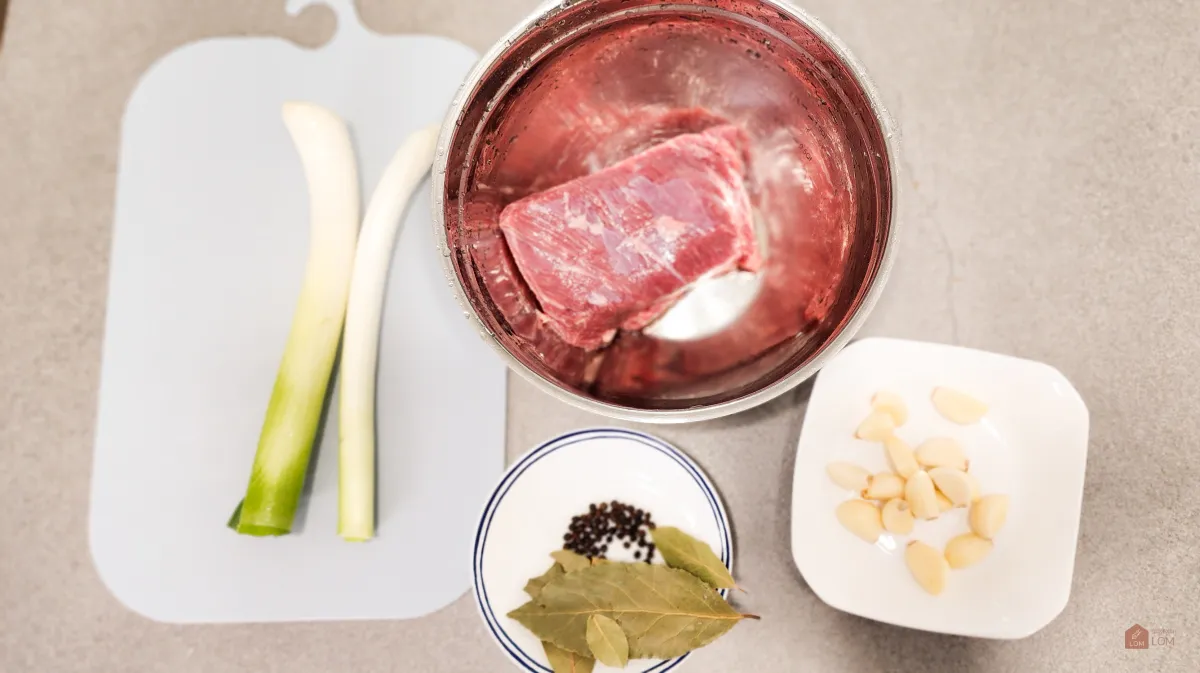 집에 무가 없어서 대파랑 통마늘만 넣었는데 무가 있으면 같이 넣으면 고기가 더 부드러워질 수 있을 것 같아요.