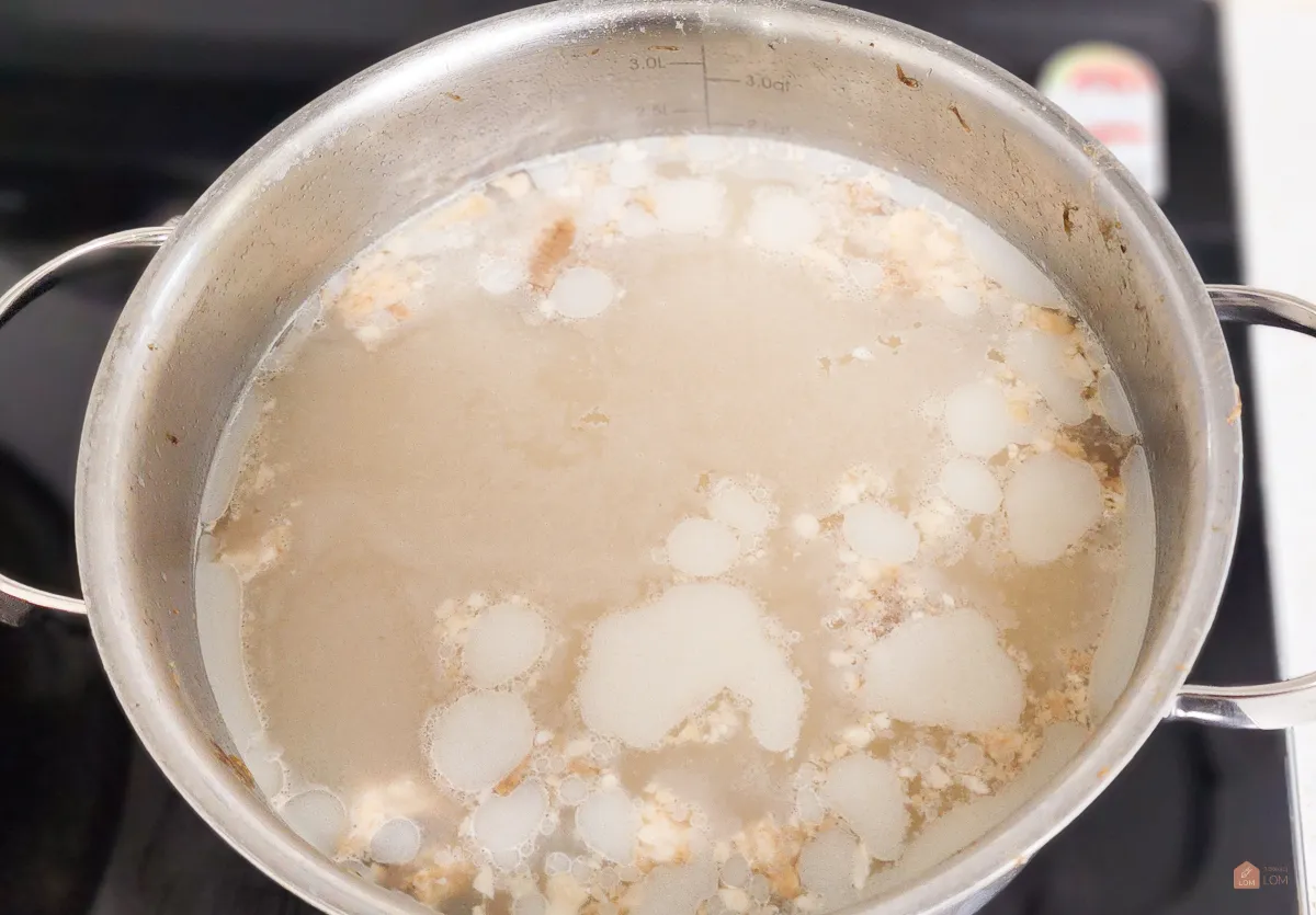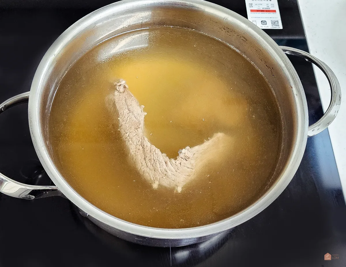 고기는 건져내고 맑은 고기 국물은 버리지 말고 다른 요리에 활용하세요.