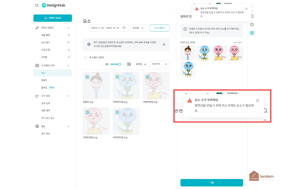미리캔버스의 기여자는 디자인 허브에서 콘텐츠를 업로드하고 관리할 수 있어요.