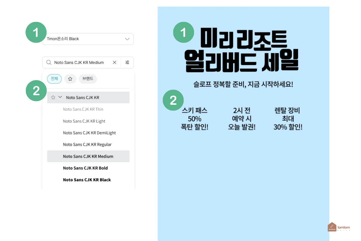제가 쓴 폰트는 티몬몬소리와 노토산스입니다.
