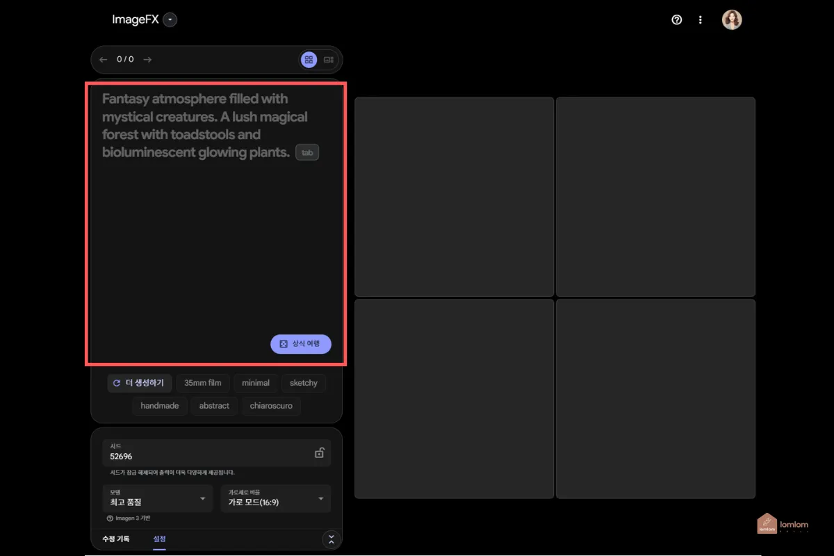 ImageFX는 프롬프트를 영문으로 입력을 해야 하는데,