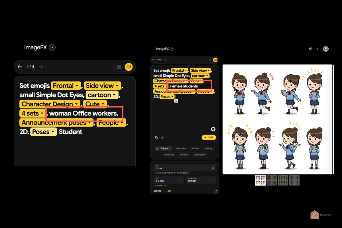 ImageFX로 캐릭터 만들기, 포즈와 표정 프롬프트