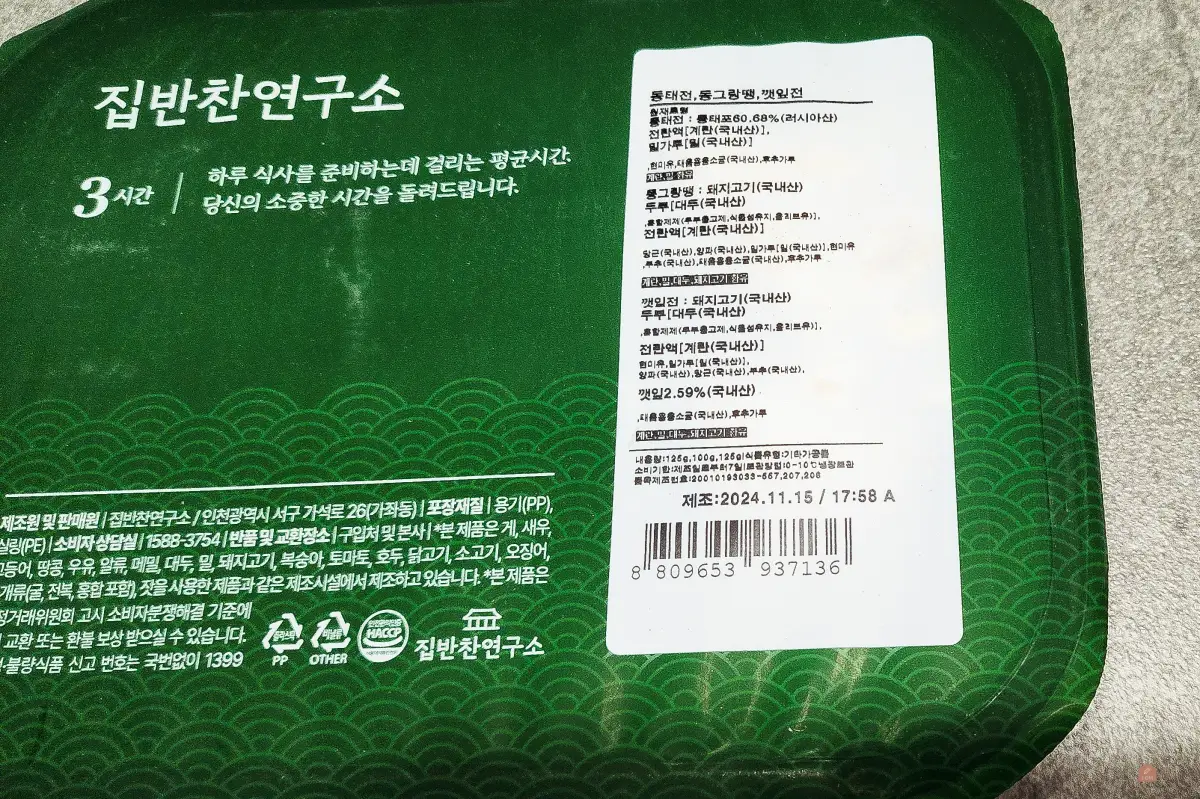 그러다 친구 추천으로 집반찬연구소를 알게 되었고, 동태전, 동그랑땡, 깻잎전을 주문해 봤어요.