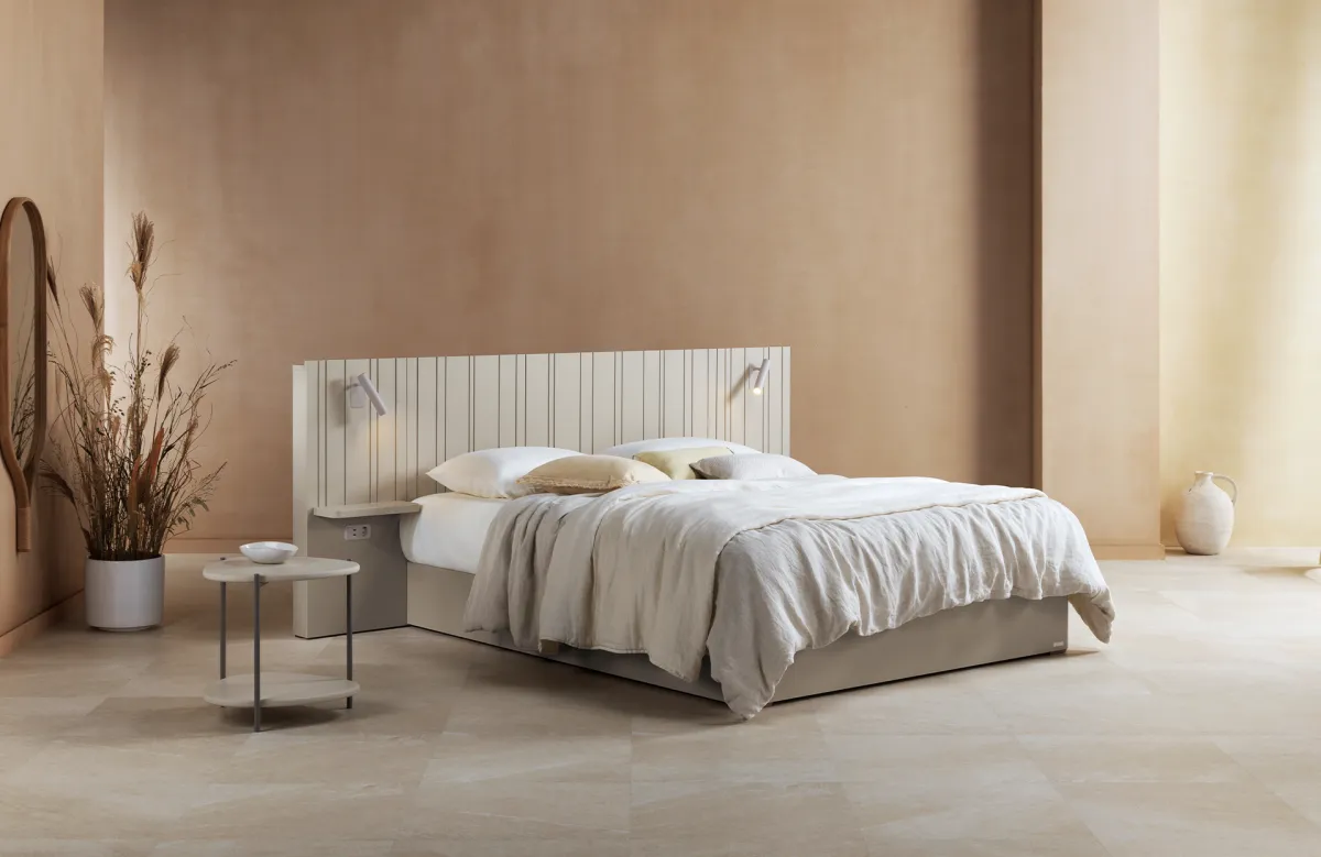 Tric는 모듈형 프레임으로 구성되어 사용자가 필요에 따라 구성 요소를 추가하거나 제거할 수 있어 라이프스타일에 맞게 조정이 가능합니다. 예를 들어, 헤드보드와 협탁을 결합하여 추가적인 수납공간과 편리한 사용성을 제공합니다.