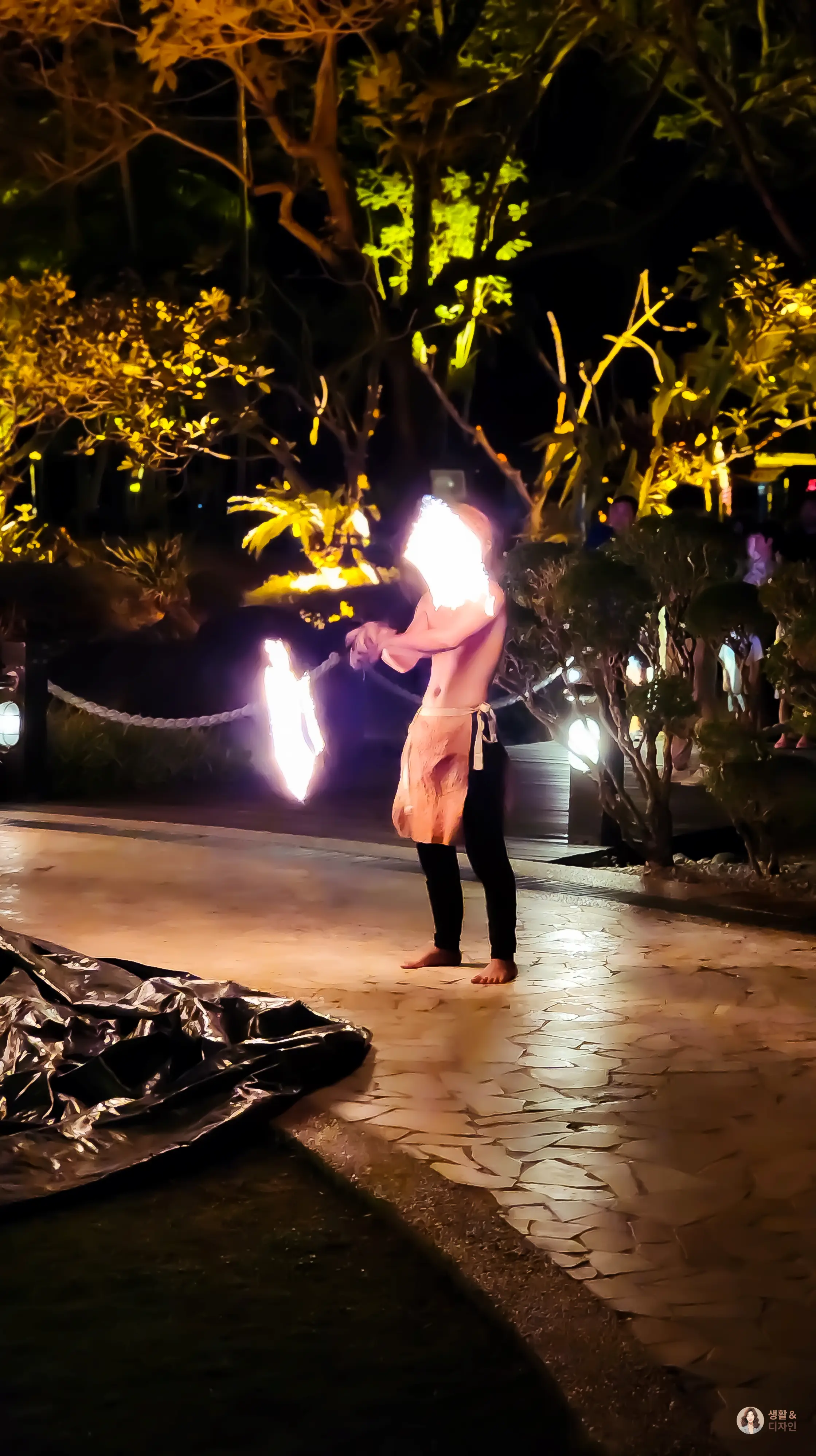 디너쇼의 하이라이트는 불쇼였는데 , 처음에는 기름냄새가 많이 나서 조금 적응이 안 됐는데,