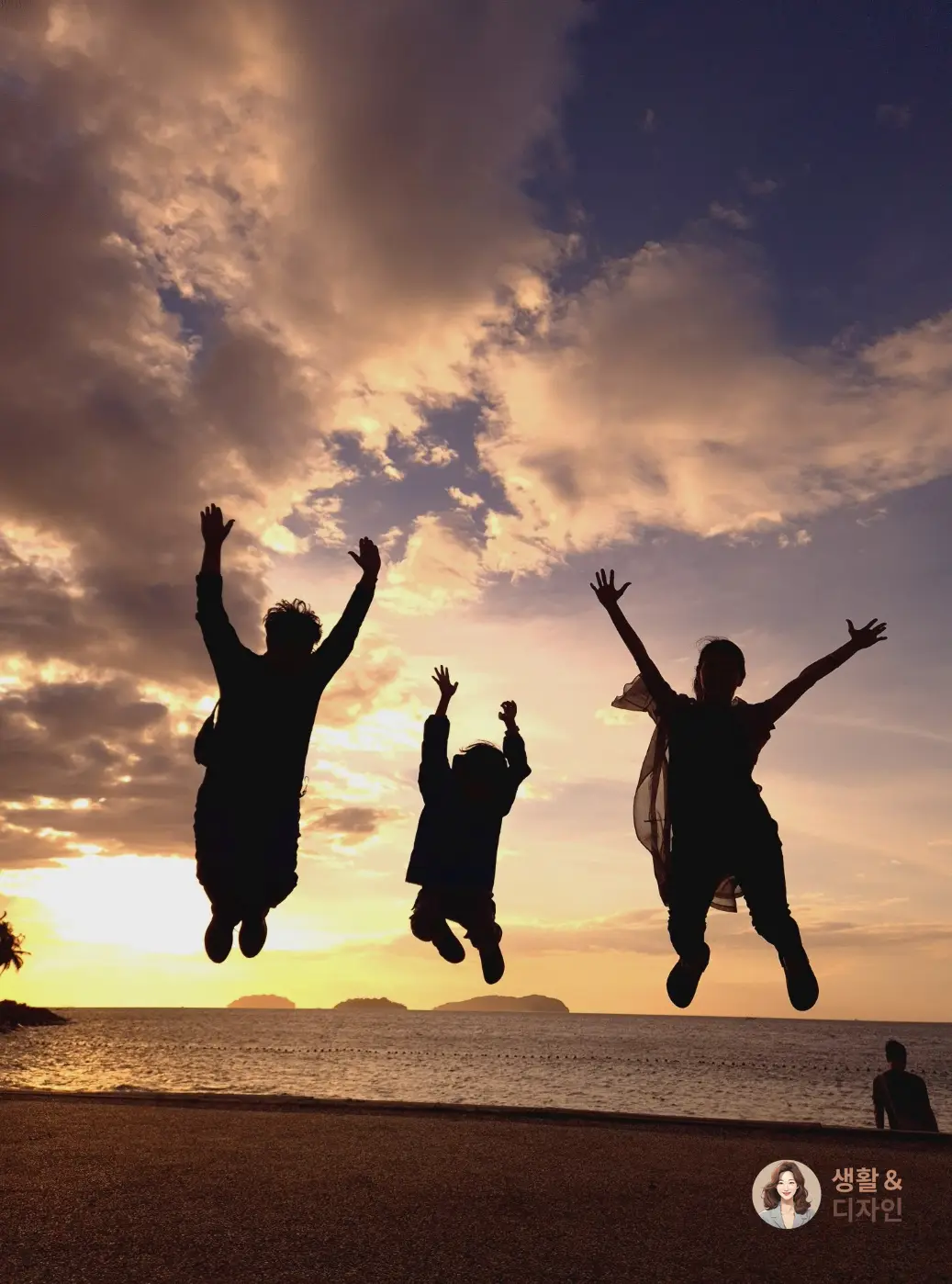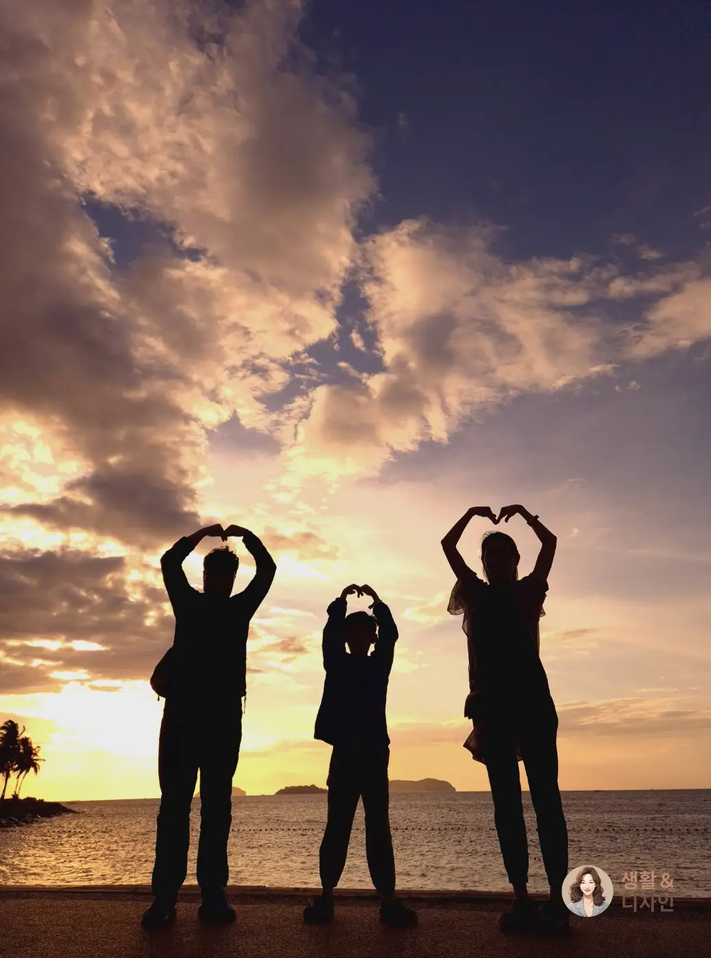 평범한 포즈의 가족사진이지만 멋진 석양을 등지고 찍으니 너무 멋지죠?