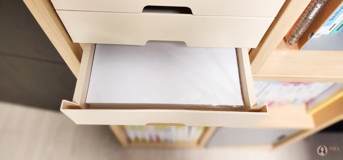이번에 4단 인서트 플라스틱 서랍장을 추가로 구입한 이유는 프린터 용지를 수납하기 위해서인데요.