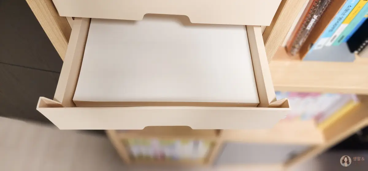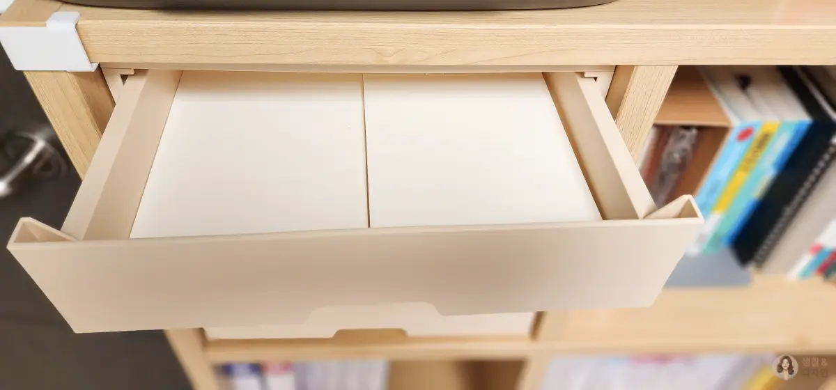 그래도 안전하기 사용하기 위해 인서드 서랍장은 책장의 3단 이하 부분에만 설치하는 게 안전하다고 안내돼 있더라고요.